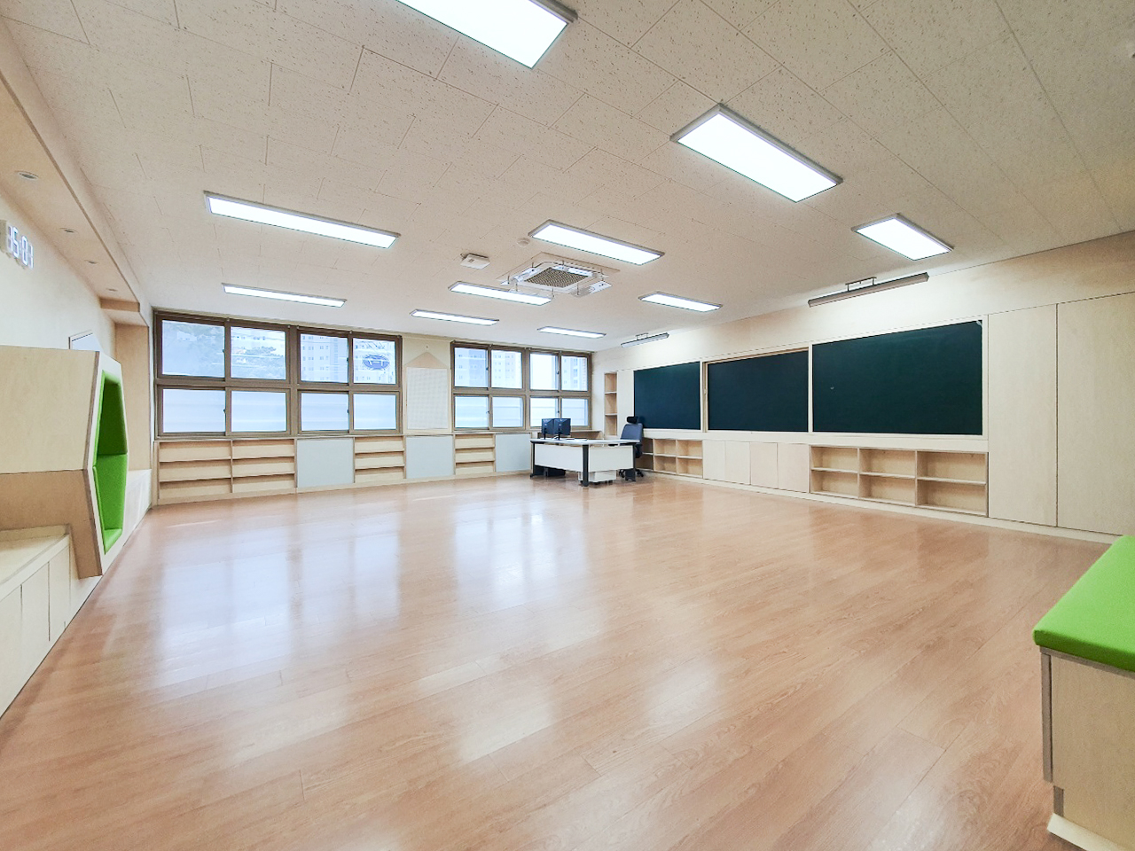 이번 울산 중산초등학교 리모델링에서는 교실 입구부터 내부, 복도까지 아이들의 동선과 시선을 기준으로 공간을 재구성했습니다.수업 흐름을 고려한 칠판 벽면, 책에 자연스럽게 가까워지는 전면 책장, 머물 수 있는 벤치와 수납 설계를 통해 교실의 기능을 확장했습니다.